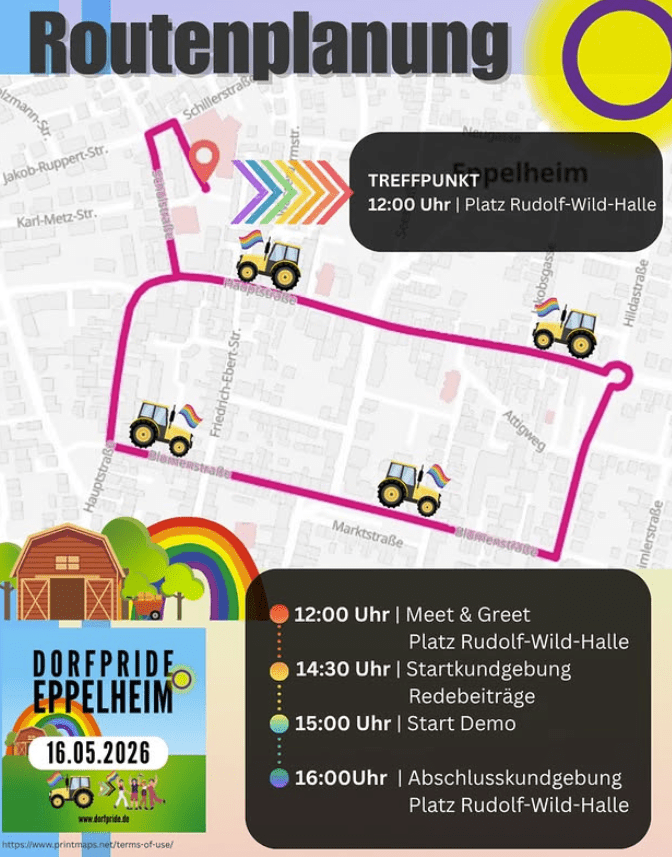 Am Samstag, 16. Mai 2026 ist es soweit: Die siebte Dorfpride findet in Eppelheim statt! 🎉