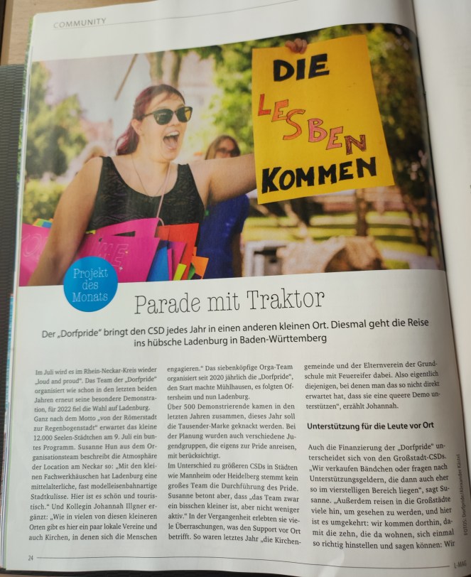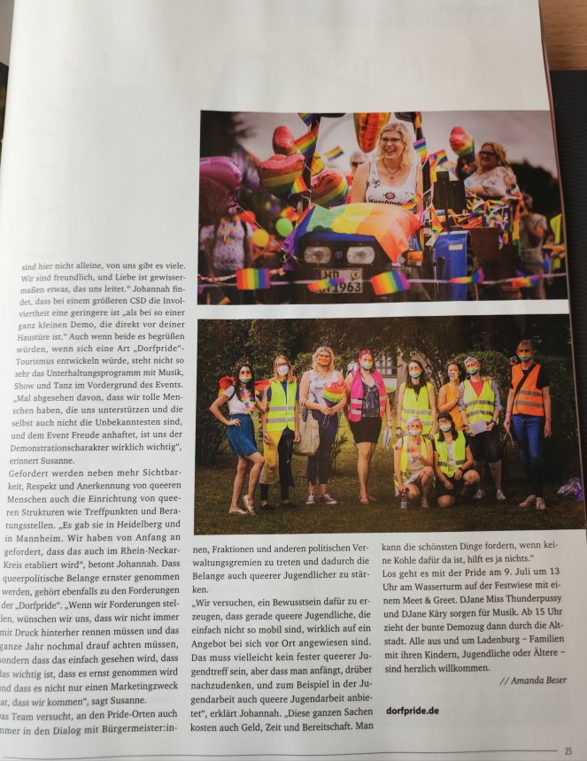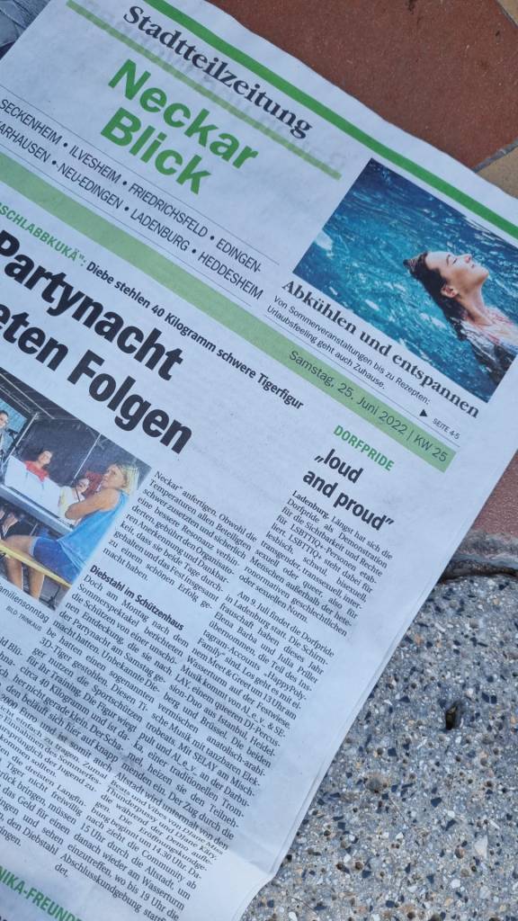 gefühlt wird die Dorfpride überall erwähnt, wir freuen uns wahnsinnig darüber und natürlich über die Dorfpride selbst am 09.07.22 ab 13 Uhr in Ladenburg.